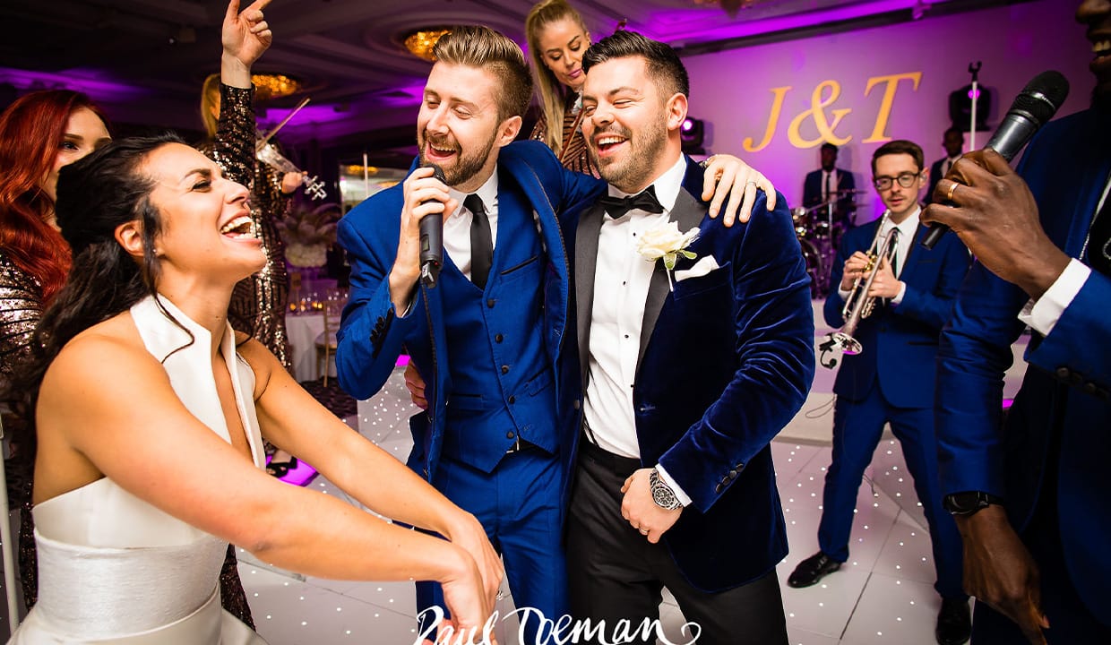 Combining DJs, singers and live instruments, The Function Band DJ Live is a fantastically versatile set up which looks and sounds amazing, and is available from a 6 piece to a 20 piece,Β giving you that full band sound.