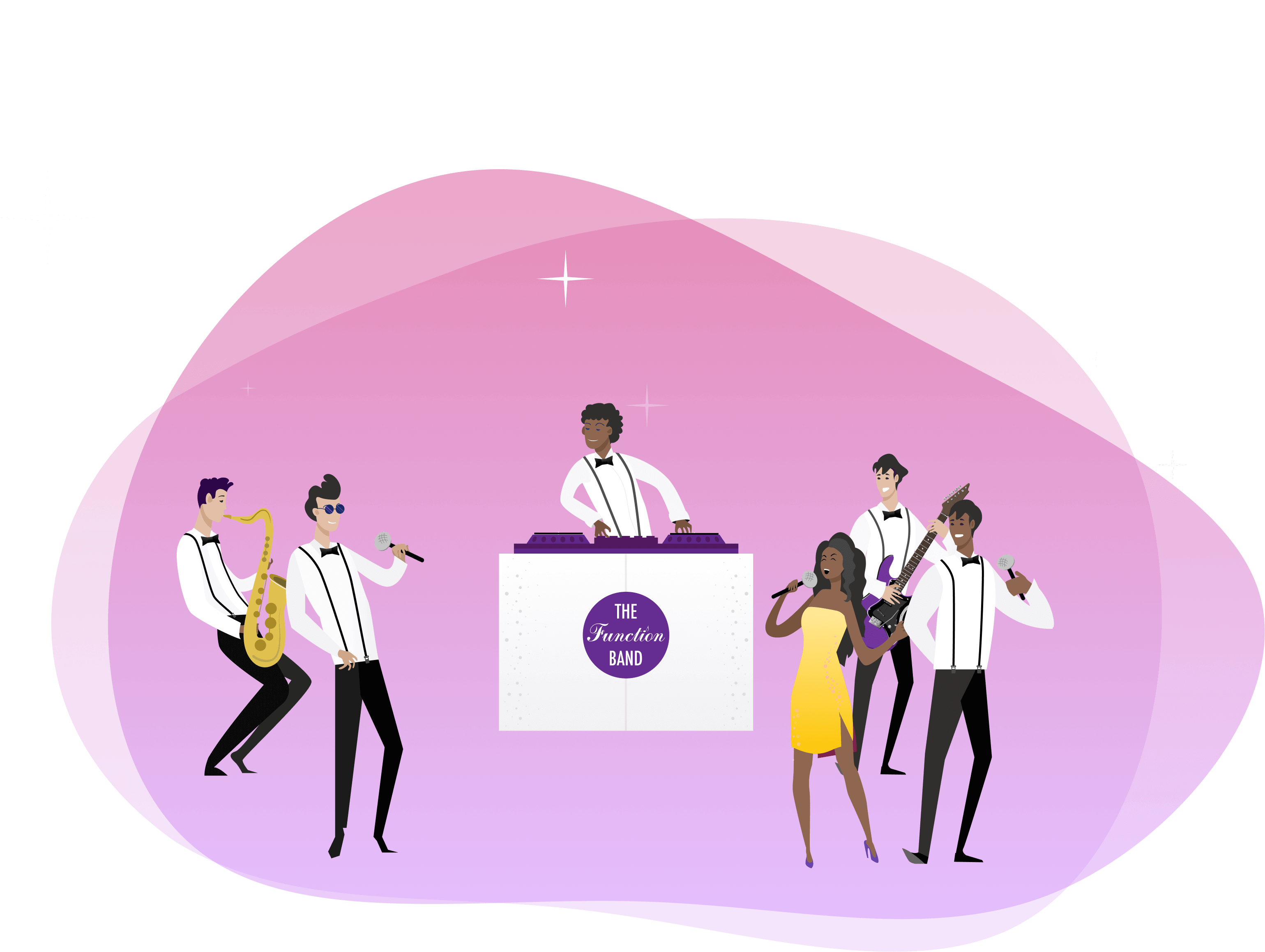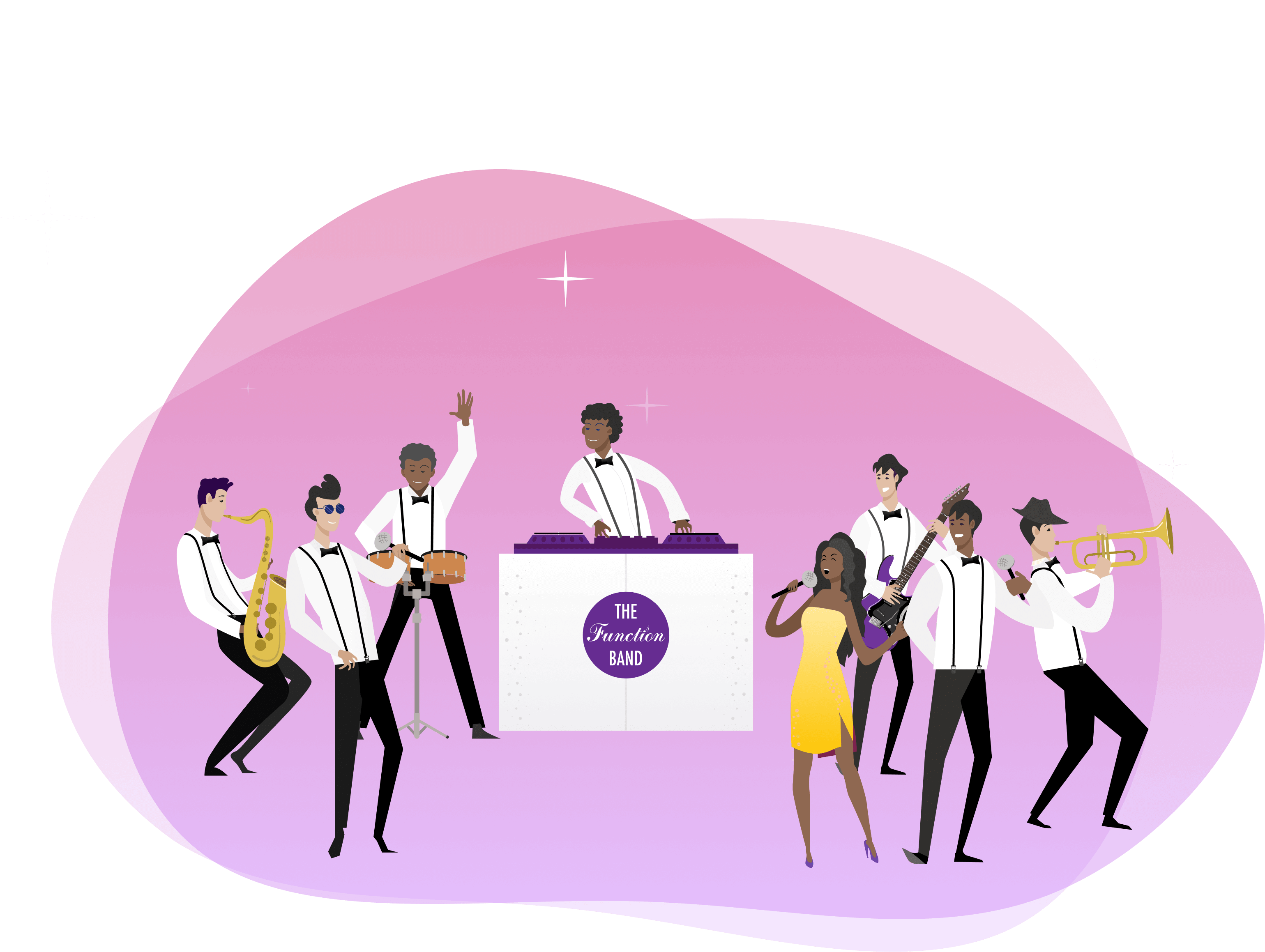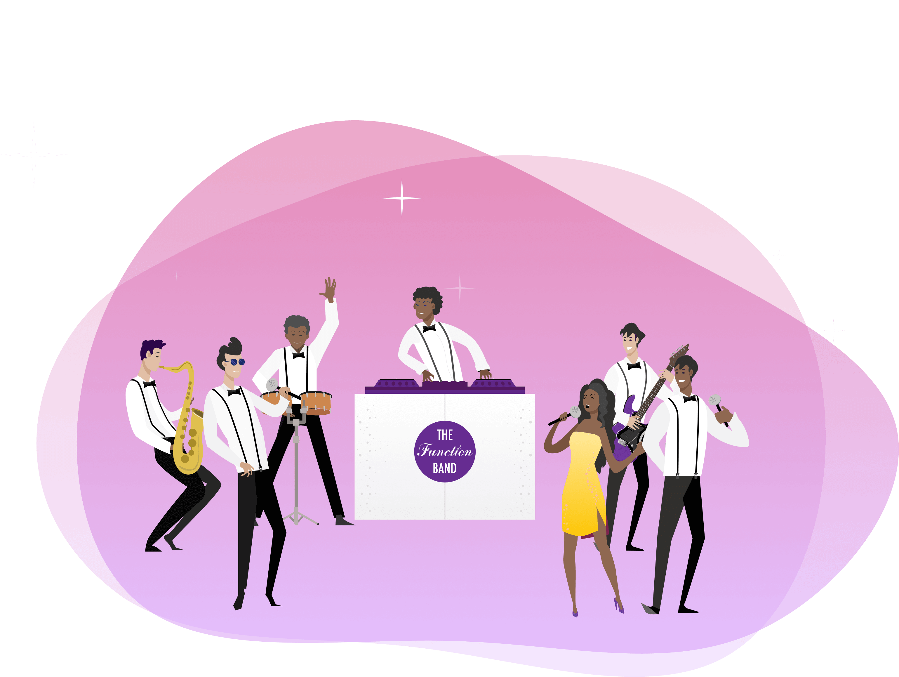 As with our ShowBand, The Function Band DJ Live provide live music throughout your event. The Function Band DJ Live will wow your guests whatever you budget or venue and keep your guests entertained from start to finish.